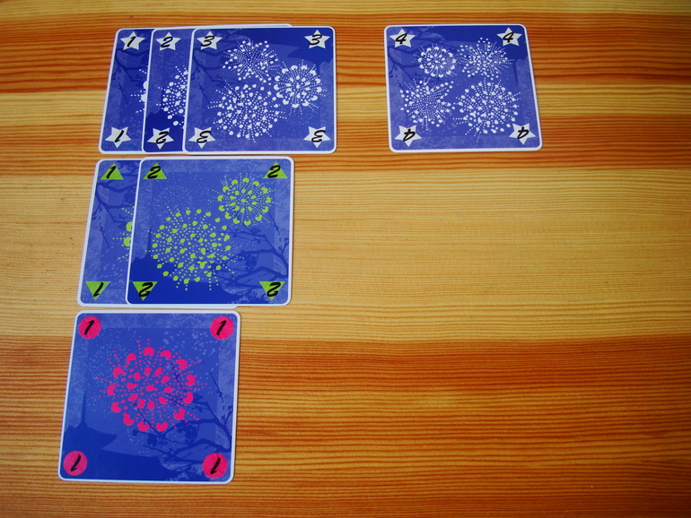 Либо карта может начать новую цепочку фейерверка, если эта карта с единичные номиналом, и фейерверка такого цвета на столе нет.