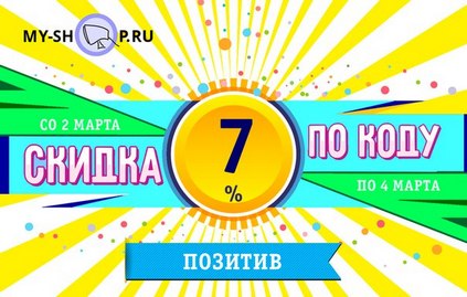 В интернет-магазине "Май-шоп" дополнительная скидка 7% по кодовому слову ПОЗИТИВ (суммируется с накопительной, общая не может превышать 25%) со 2 по 4 марта.