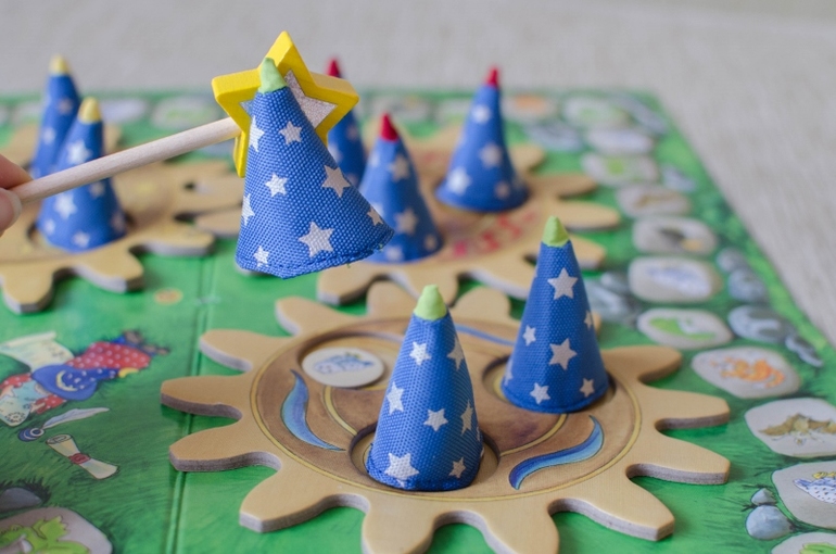 Игра интересная и еще главный ее плюс, это оформление - колпачки и палочка не оставят детей равнодушными)))