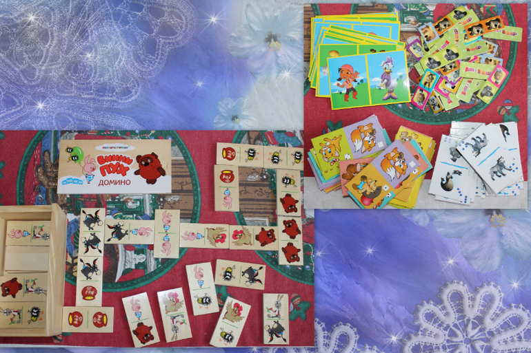 У нас, так же огромное количество игр - домино и лото. Часть куплены, но большая часть подарены. С этого мы начинали играть в настольные игры и никак этим не переболеем. Самыми любимыми у дочки, были и остаются "Барбоскины" и "Винни Пух".