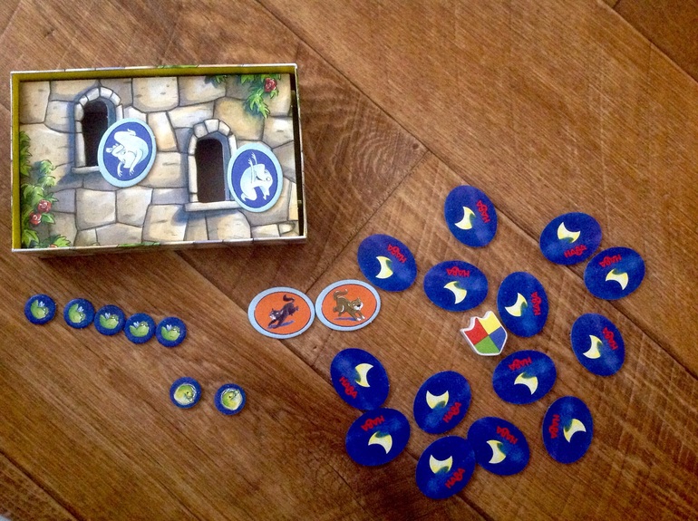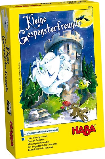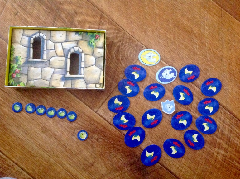 3. Третье место опять мемо, но теперь от Хаба. Эта фирма - всегда безупречное качество и интересный сюжет. Приведениям надо попасть на бал в замок, но тк вход сторожат кошки, попасть можно только, если найти два одинаковых приведения ( есть раунд, где ищем по цвету фона, и где ищем чтобы именно сами приведения были похожи). Каждый раз, когда пара попадает на бал, переворачиваем один светлячок, который зажигается от радости. По формату маленькая коробка, в дорогу отлично