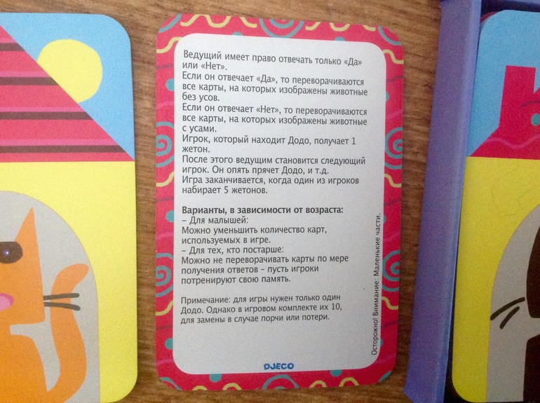 Потом игра "Где Додо?" От Джеко. Отличное качество, интересный сюжет - ищем путем логических вопросов, к кому в гости ушел мишка Додо. См правила. Для путешествий тоже отлично, тк компактная
