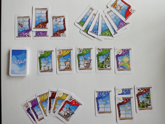 С правилами "Окошек" разобралась легко, разложила 1 раунд. Интересно, но дочке (ей 5 лет 6 мес) пока рано, хотя можно попробовать... На коробке указан возраст 8+.
