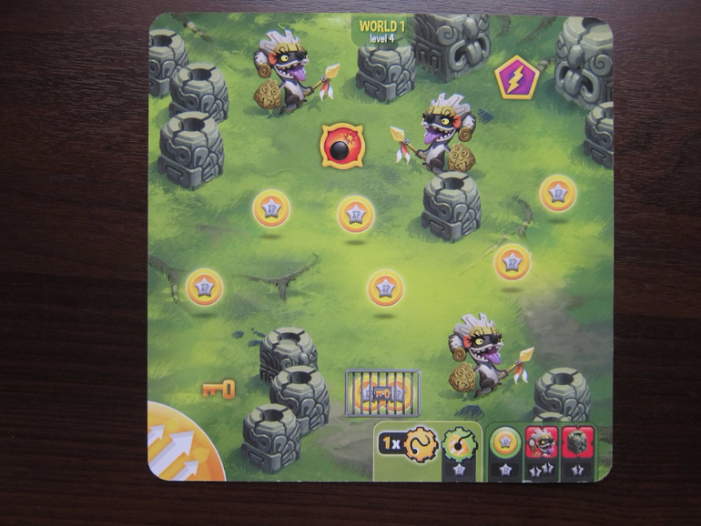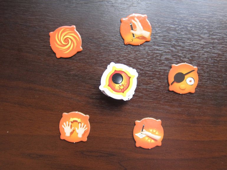 Вы уже наверное обратили внимание, что на каждой карточке-задании встречаются рисунки с бомбой и молнией. Если игрок задевает "бомбу", то получает штрафной жетон, а если "молнию", то бонусный.