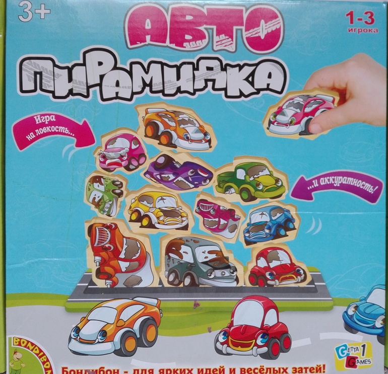 игры на ловкость рукОдна из самых любимых в последнее время игр моих сыновей, особенно младшего (2,3года) - автопирамидка от Bondibon. Заказывала на МайШоп. Прежде всего это машинки, которыми можно играть и которые приятно брать в руки. Ну и конечно тренировка координации и мелкой моторики.