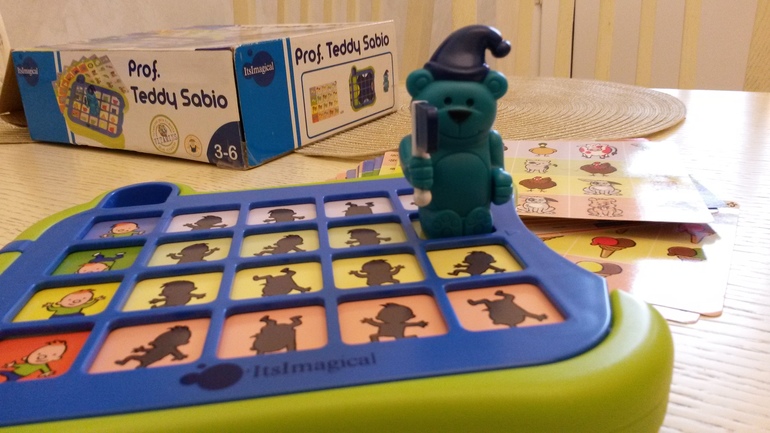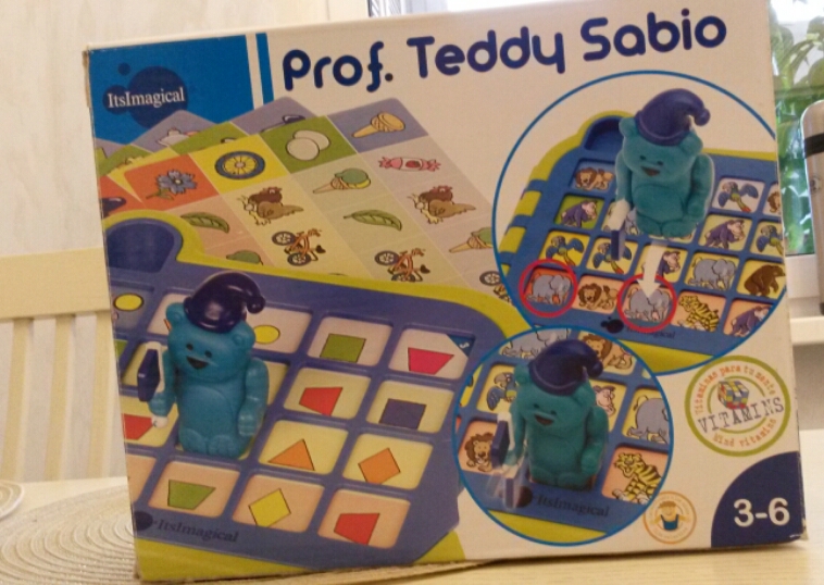 Хочу написать про игру, которую мы купили, когда ребенку было 2,5 года. Prof. Teddy Sabio эта та игра, которую Родион всегда выбирал сам и с удовольствием менял карточки, крутил диск, отвечал на вопросы. Сначала с моей помощью, а потом и самостоятельно. Познавательная игра, рекомендованный возраст 3-6, объективно в 4.7 г уже не интересно, я бы даже сказала до 4 лет.