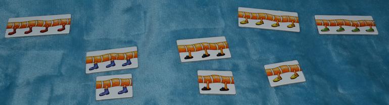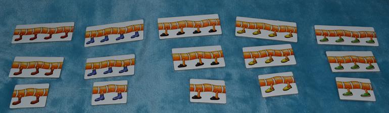 Иногда нужно решать - взять хотя бы 2 ноги или рискнуть и перебросить кубики в надежде выбросить их так, чтобы взять карточку с 3-мя или даже 4-мя ногами. Хотя, если не повезёт, можно остаться и без карточки вовсе.