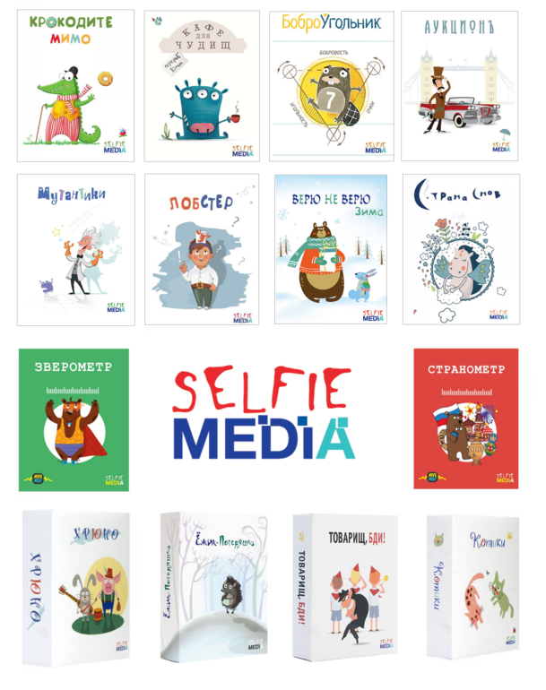 Информация с необъятных сетевых просторов гласит: "Selfie Media-веселые настольные карточные игры для всей семьи. Российская компания Selfie Media продолжает вовлекать нас в необъятный увлекательный мир настольных игр. Вам не придется скучать на дружеской вечеринке, в долгом путешествии или в дождливый викенд. Продукция Selfie Media -это всегда понятные правила, прекрасные иллюстрации, компактная упаковка и невысокие цены. Все это делает настольные игры Selfie Media все более популярными.»