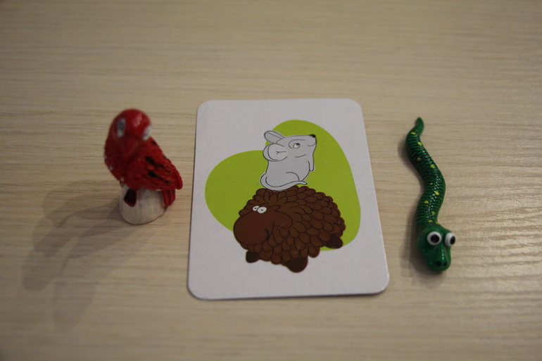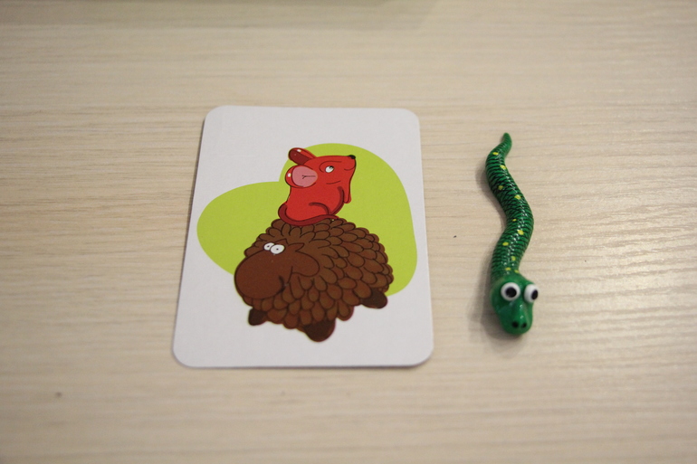 Минусом считаю близкие цвета серый и белый. Вот на фото ниже белая и серая овца и белая и серая змея. Когда рядом, то понятно где серый, а где белый. Но когда мы играли в первый раз, то путались в цветах. Раза после третьего приловчились, и в общем-то не проблема.