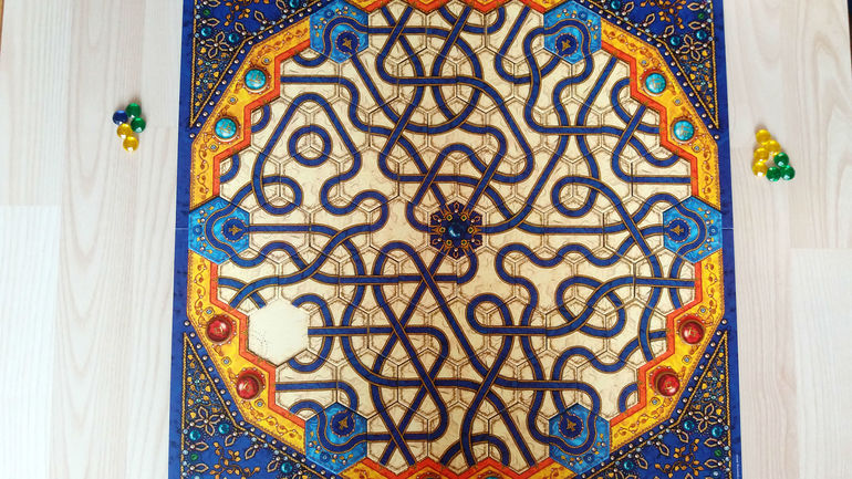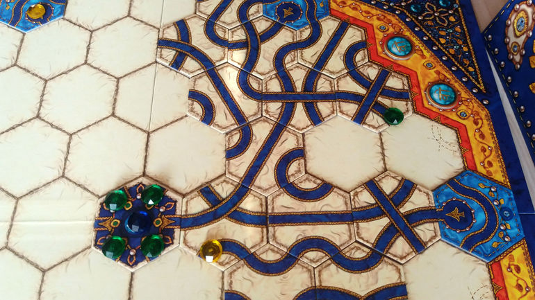 Тайлы можно располагать в любом порядке (кроме одного исключения - нельзя соединять соседние точки в одних воротах). Главное, не забывать при этом перемещать по вновь созданной дорожке камень.
