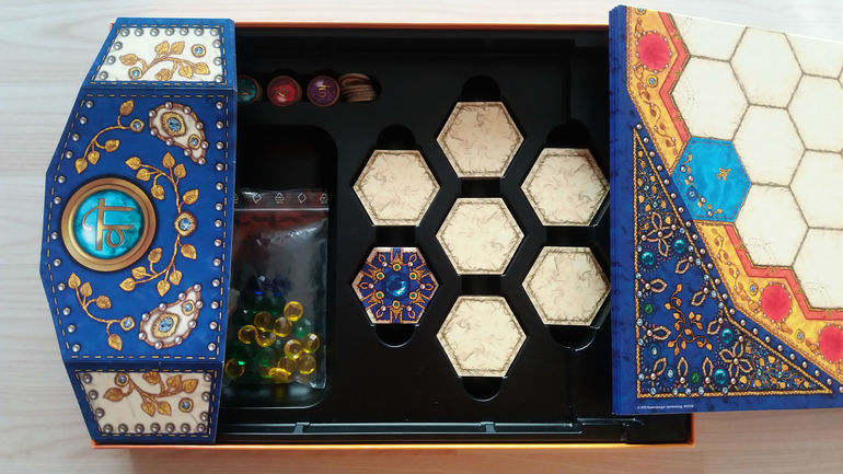 Коробочка внушительная, внутри удобный органайзер (как и всегда у Ravensburger). Мы очень любим игры с восточным колоритом, так что в первую очередь эта коробочка привлекла своей "внешностью", ну аж после мы по достоинству оценили и "содержание".