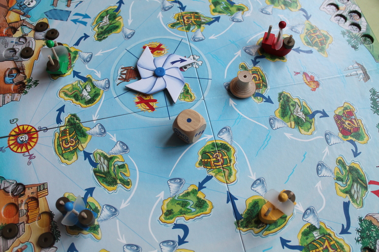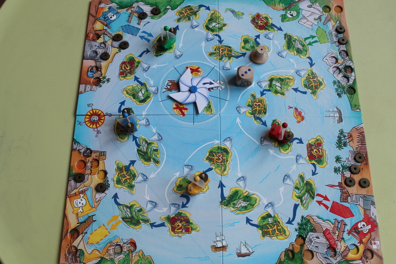 Игра для 2-4 игроков. Цель игры: первым привезти в свою гавань как минимум десять пиратских кладов. В игре присутствуют кубик и фишка-шторм. Пират кидает кубик, и корабль отправляется в поисках клада по синим стрелкам через острова.