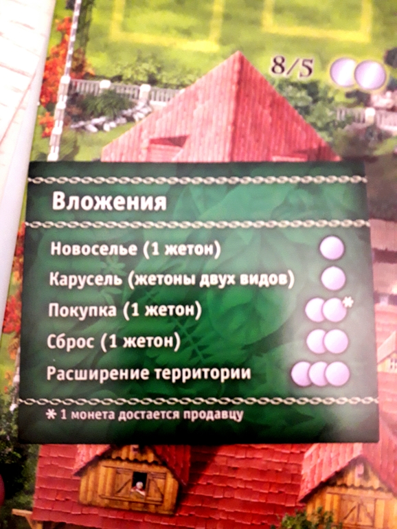 Что можно делать: перемещать, покупать/сбрасывать, открывать филиал. Эти вложения стоят денег. И за один ход можно сделать только одно из этих действий.