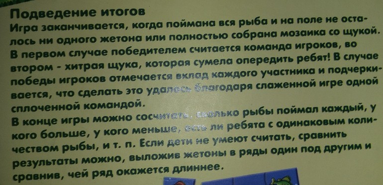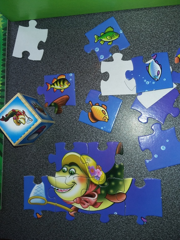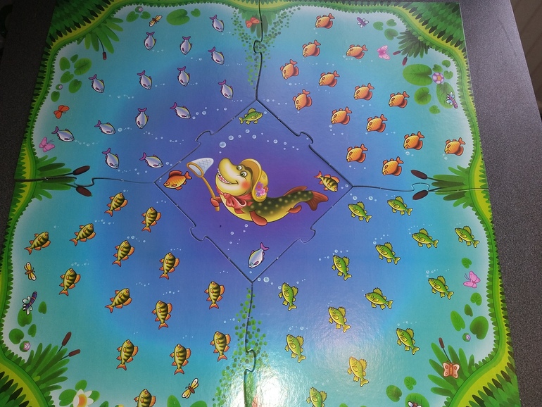 Один раз сыграли всей семьей. Вова был щукой и он выиграл. Больше играть не хочет, только пазл собирает. Игра годика на 3+.