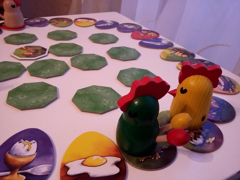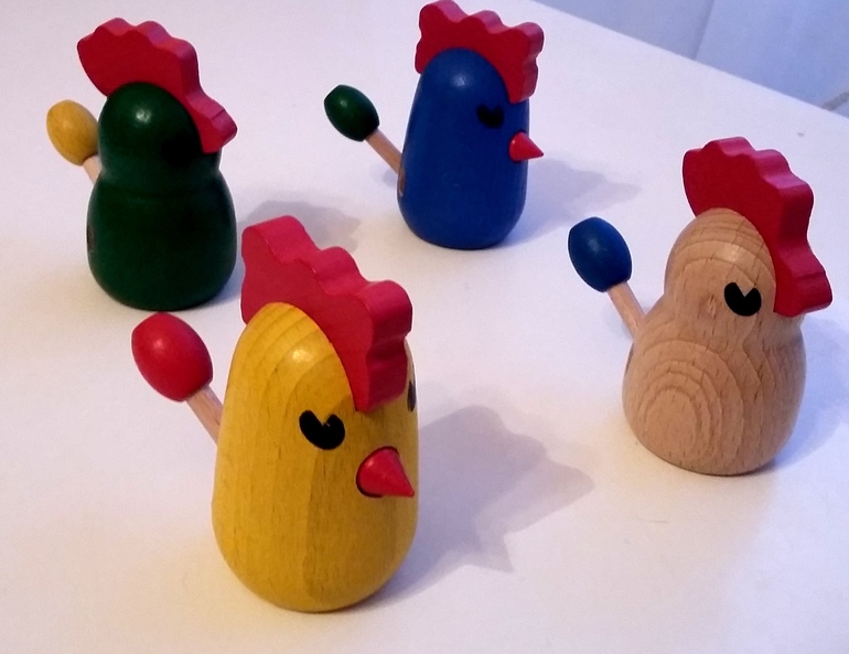 Играем всегда втроем. Так интереснее намного. Такой азарт!!!. Суть игры- догнать своих соперников и забрать перо. У каждого петушка есть четыре отверстия и одно перо. Нужно заполнить свою пятую точку перьями. Побеждает внимательность, память и можно сказать хитрость.