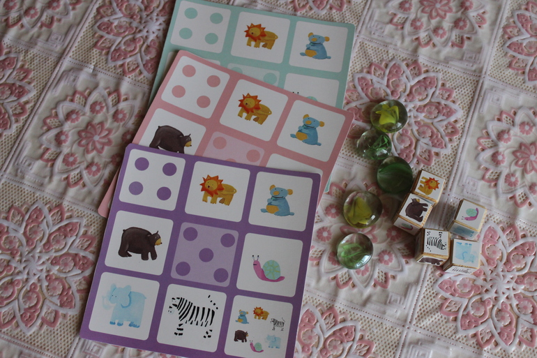 Нам играть очень понравилось. Маша правила освоила быстро. Я использовала для изготовления деревянные кубики с гранью 2 см. Пришлось картинки немного подрезать. Если вы будете тоже делать кубики, наклеивая картинки на деревянные, то используйте кубики с гранью 2,5 см. В папке с картинками есть раскладки кубиков, можете попробовать склеить из картона. Вместо жетонов я использую для игр стеклянные кружочки из fix price.