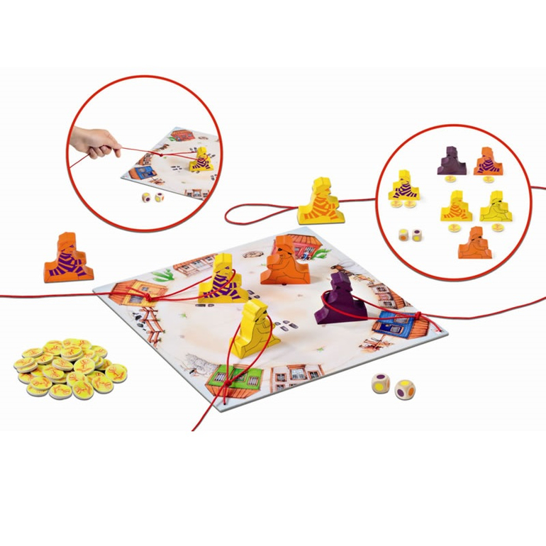 Все игроки одновременно стараются накинуть лассо на бандита того цвета, который выпал на кубике, а затем препроводить их в тюрьму (по углам игрового поля).