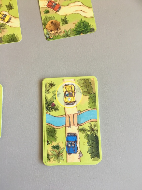 Каждый игрок выбирает карту с машиной определенного цвета и кладет перед собой, по центу кладем 3 маршрутные карты и сбоку стопку дуэльных карт.