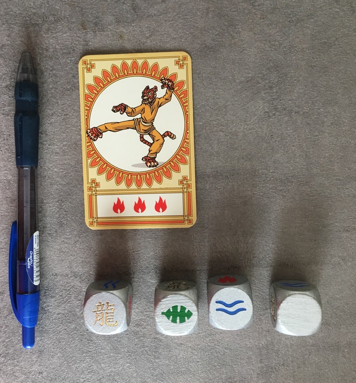 Наступило время для лучших бойцов соревноваться друг с другом за супер Чемпионский кубок Кунг Фу.Но пусть вас это не волнует, когда вы смело будете выходить на арену. Вы полны уверенности в силе кубиков, и пытаетесь собрать необходимые символы, чтобы победить своих соперников. Чем выше ранг ваших оппонентов (ученик, мастер или великий мастер), тем больше очков вы получаете за победу, однако, тем сложнее его победить. Чтобы выйти победителем из игры, вам нужно запомнить, какой из оппонентов прячется под каждой из карт. Цель игры состоит в том, чтобы к концу игры набрать больше всех выигрышных баллов.