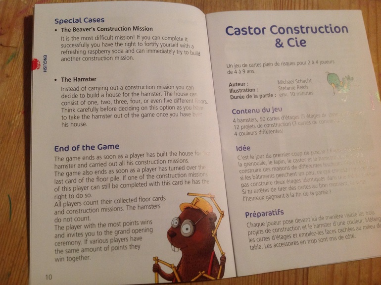 В английском написано, что хомяу выбывает из игры, как только ему построили дом, а в немецком - как только вы попробовали использовать хомяка. При этом и там и там указано, что игра заканчивается, когда построн дом хомяка и выполнены проекты (или когда карты закончились).