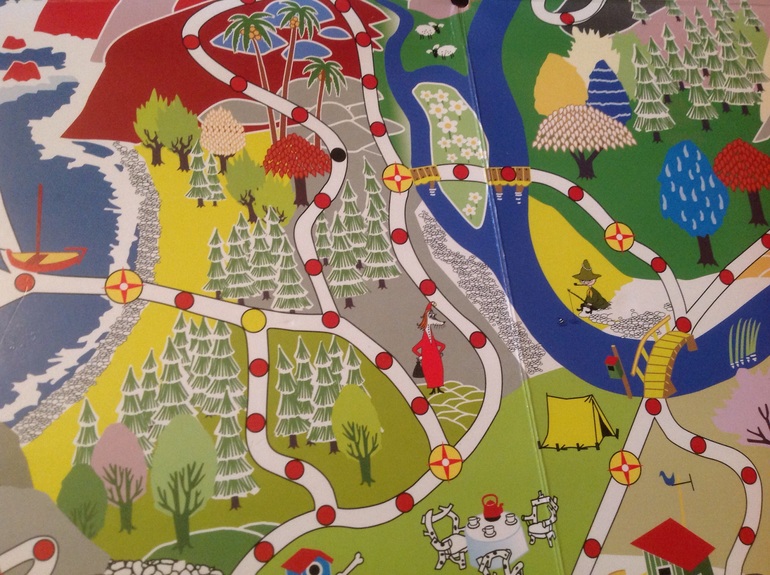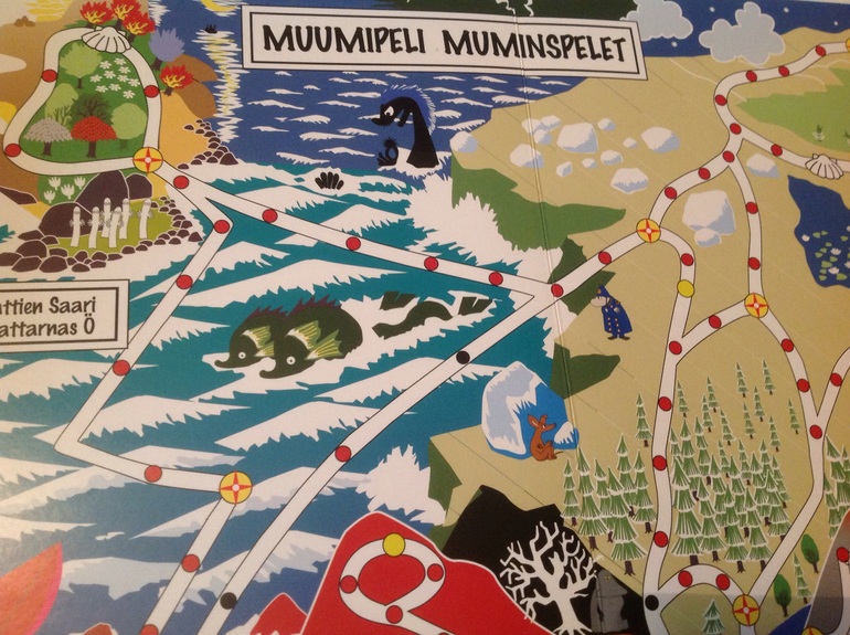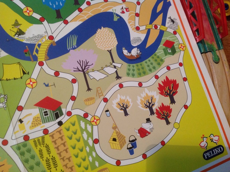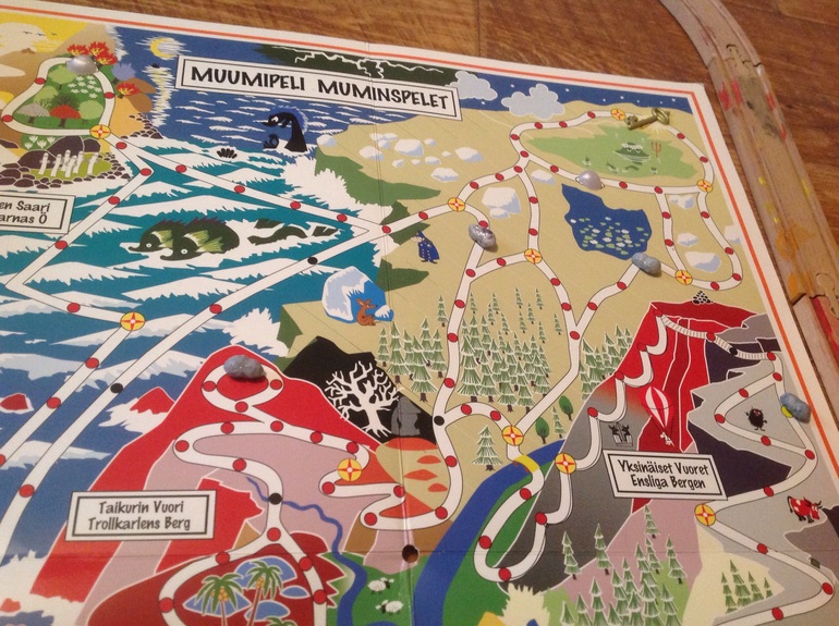 Итак, об игре. Это не просто ходилка, это погружение в жизнь Муми долины и семейства Муми тролей. Игровое поле большое и красочное. Рисунки Туве Янсон. Это долина Муми Тролей, где живут все персонажи.