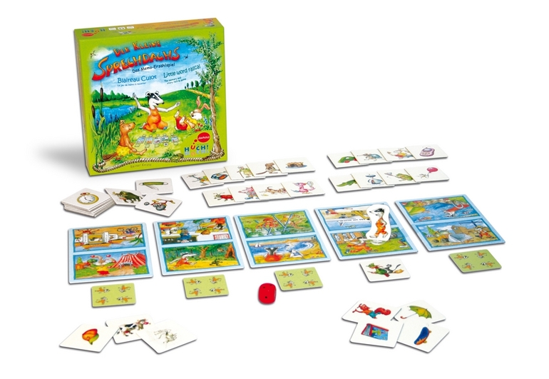 В состав входят 10 больших карт (в правилах написано 5, но сканов дано было 10, может от двух разных игр), 40 маленьких карточек, фигурка барсука, кубик. Мне кажется,так как поле небольшое, на кубике должны быть точки от 1 до 3.