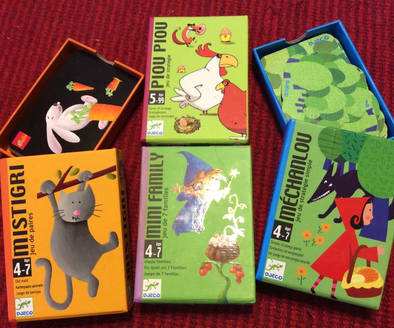 Пожалуй, самые маленькие у нас это карточные игры от Djeco, что вообщем-то и не удивительно... карточки места много не занимают!