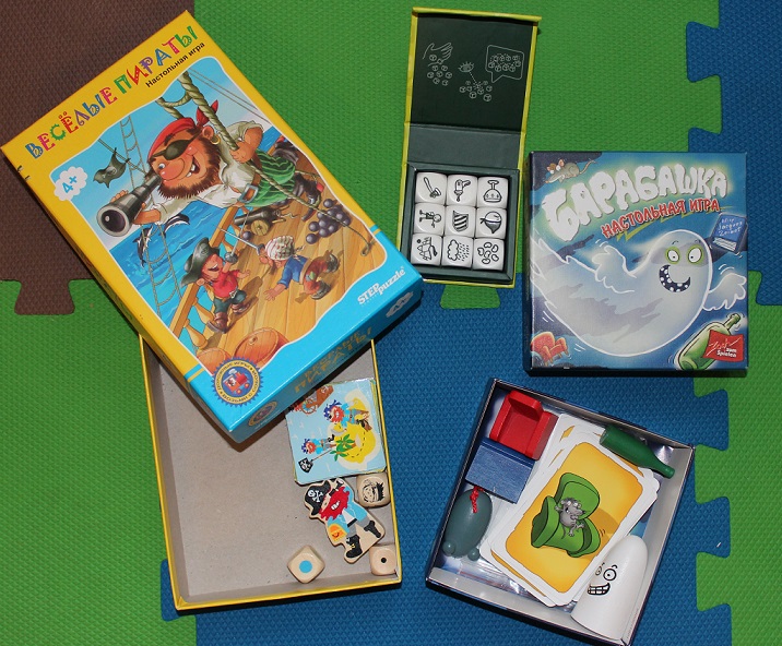 Самые компактные, пожалуй, для меня будут Барабашка и Кубики историй. Они же даже помещаются в ту самую коробку от пиратов.