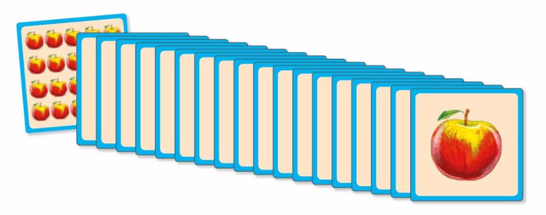 Когда Ваш ребенок уже будет хорошо разбираться в количествах, Вы можете перевернуть карточки и использовать цифровые изображения вместо изображений с яблоками.