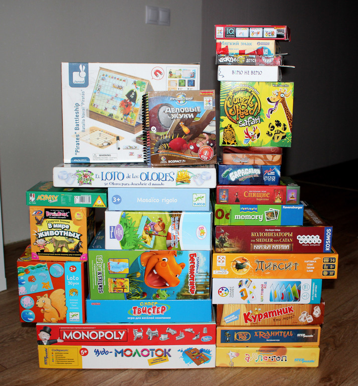 Настолок у нас уже несколько полок в стеллаже, но мы себя считаем пока начинающими игроманами!)