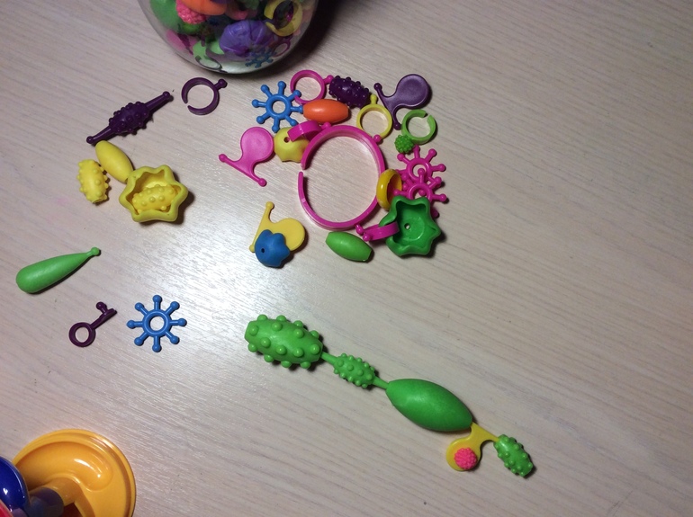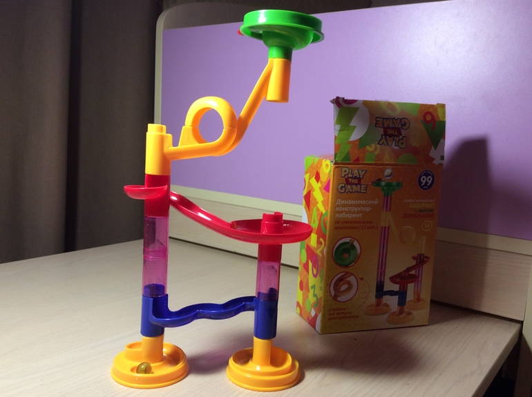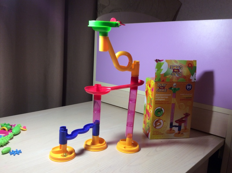 4. Ой даже не знаю... но покажу. Наш сторублевый хит среди конструкторов. Сначала с истериками дочка выпрашивала меня построить, что бы самой просто шарик кидать в трек, но постепенно она сама стала его собирать и теперь мама только шарики по полу собирает). Куплю ещё парочку, если встречу в фикс прайсе.