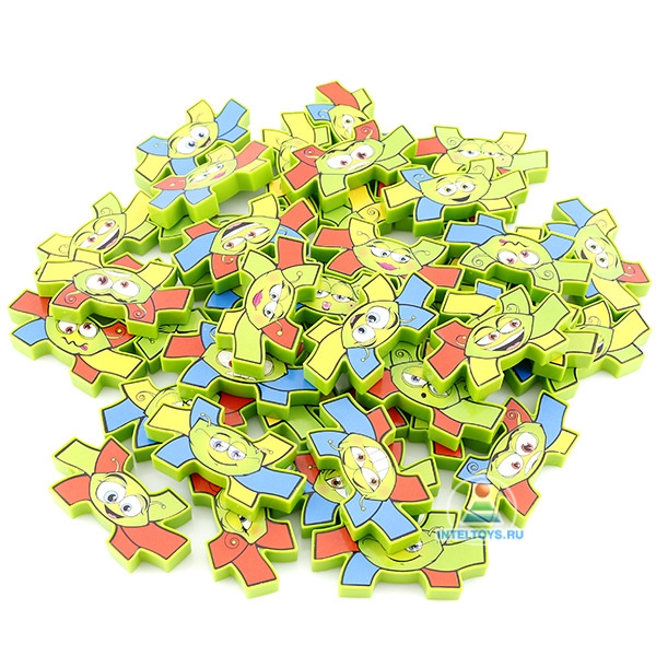 Необходимо соединить как можно больше ножек одного цвета. Побеждает тот игрок, который первым избавился от всех фишек на руках.