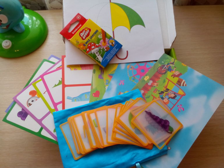 IQ лото давно лежало в хотелках, столько положительных отзывов. Поля для игры опять-таки тоненькие, но вот прозрачные карточки-половинки восторг. Кстати, по отзывам не обратила внимание, что поля двусторонние, и к обратной стороне есть много заданий на развитие речи и мышления. Красивый мешочек для хранения карточек, мелки и творческий блокнот - приятный бонус.