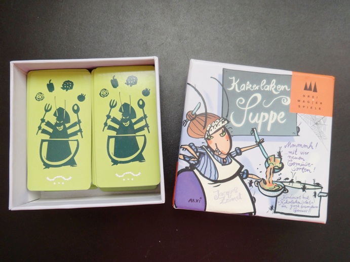 карточные игрыНедавно у нас появилась новая компактная коробочка с не слишком привлекательным названием - Тараканий суп. Да, да, один весьма симпатичный таракан будет готовить нам суп! Не спешите отворачиваться от монитора, тараканы в нашем супе не плавают, и вообще процесс приготовления будет веселым!