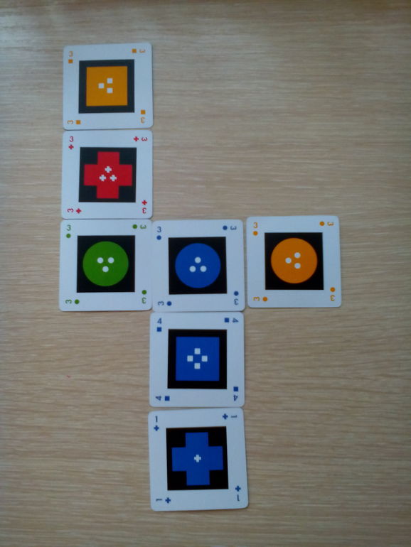 Мы играли вдвоем как полной колодой, так и половиной, что сокращает время игры, но никак не влияет на процесс. Игра очень занимательная, увлекающая, для любителей пораскинуть мозгами на досуге, как говорит моя дочь: "Я чувствую как извилины шевелятся". Младший тоже заинтересовался, привлекли цветные карточки, и ему находится занятие, мы играем половиной колоды, он рядом строит линии по цвету и форме, все довольны.