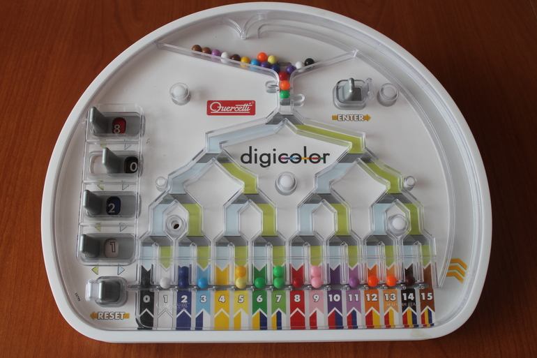 Необходимо разложить внутри игрового поля разноцветные шарики, отправляя их в ячейки соответствующего цвета. Для этого нужно последовательно двигать ручки, управляющие заслонками, руководствуясь логикой и несложными вычислениями. Также благодаря этой игре ребенок знакомится с двоичной системой исчисления.
