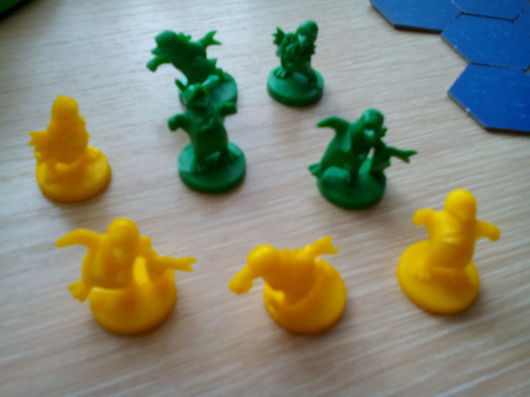 Если игроков двое берется по 4 пингвина выбранного цвета. Затем по очереди игроки располагают своих пингвинов на любых льдинках с одной рыбкой. Например так