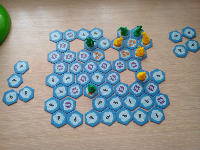 Вот например каждый игрок сделал по одному ходу каждым пингвином, улов по 4 рыбки у каждого.