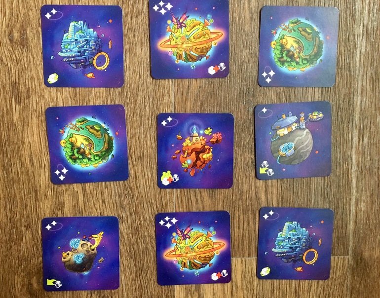 В центр стола кладем 9 планетных карт, остальные карты складываем в стопку рубашкой вверх.