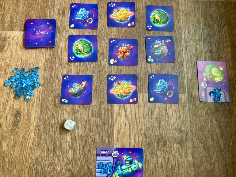 Начинает самый младший, нужно попытаться прокатить кубик так, чтобы попасть на одну из планетных карт, лучше всего с наибольшим количеством звёзд на карте. На кубике будет указано количество кристаллов