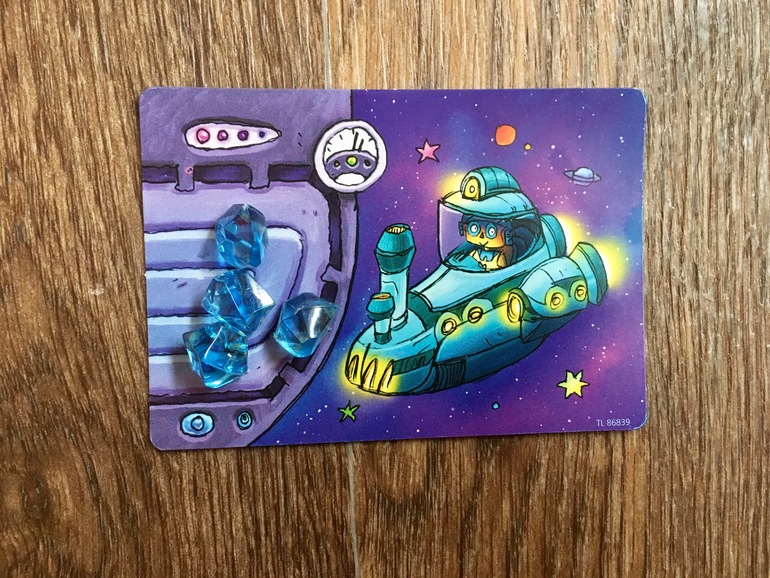 Каждый игрок выбирает себе космический корабль и получает 4 кристалла топлива, остальные кристаллы это запас.