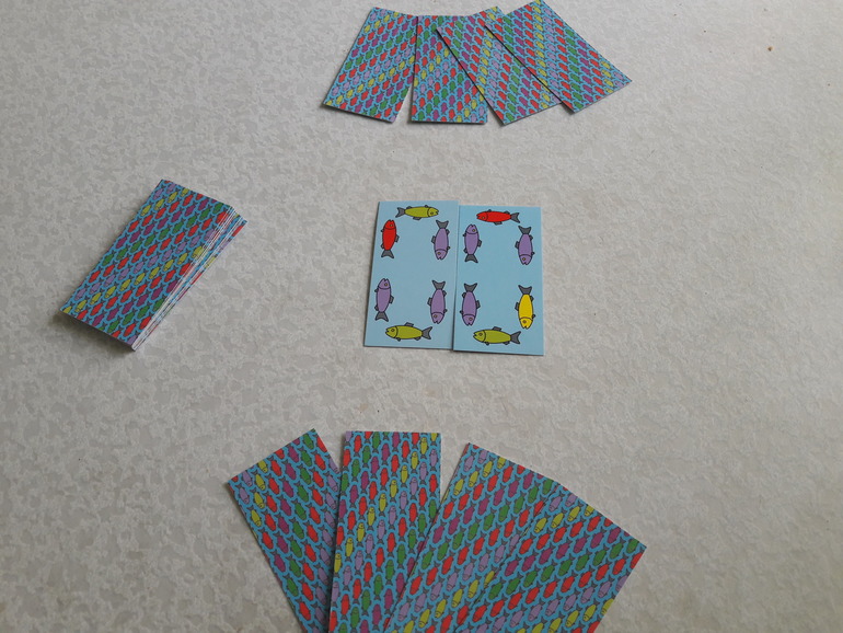 Если удалось присоединить карту так, чтобы совпадали не две рыбки, а три, то игрок получает тоже дополнительный ход. Пространство для раскладывания не большое. Обычно карточек 10 и победитель определен.