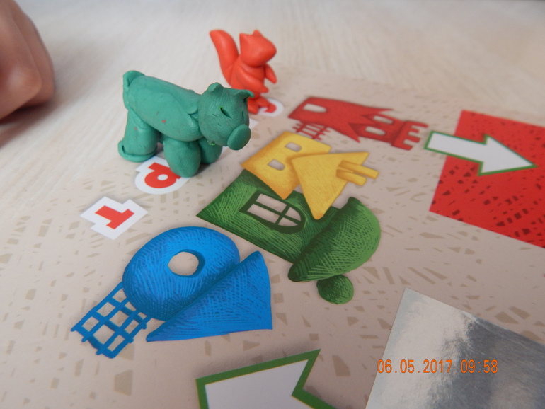 Сегодня Дмитрий захотел стать хозяином зелёной хрюшки, все зеленые поля - его дома, а я - хозяйкой красной белки, соответственно красные поля - мои дома. Мы немного отошли от основных правил, переделав их под себя. Становимся на старт игрового поля и начинаем нашу игру.