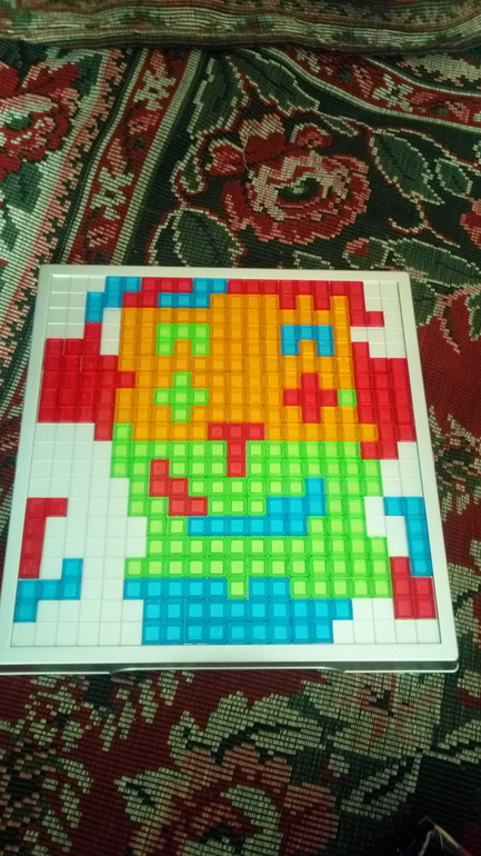 Мы с мужем поиграли с удовольствием, а Дима пока не очень оценил. Ему больше понравилось использовать игру вместо мозаики.Вот, даже "маму" сделал)))
