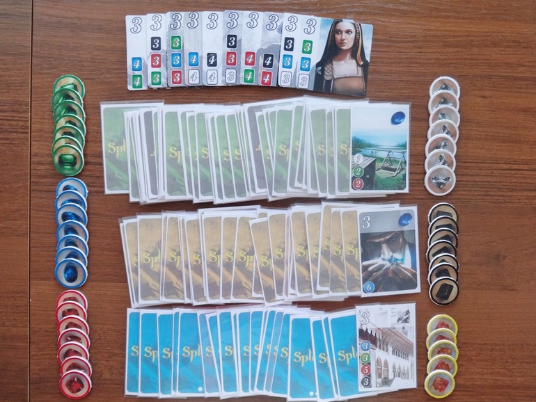 Дополнительные очки приносят жетоны вельмож. Как только игрок набрал указанное на жетоне количество карт определенного цвета, ему наносит визит вельможа. То есть выгодно не только собирать карты, которые приносят очки, но и набрать некоторое количество "бесплатных" карт, которое позволит пригласить к себе вельможу. Иногда это решает исход игры.