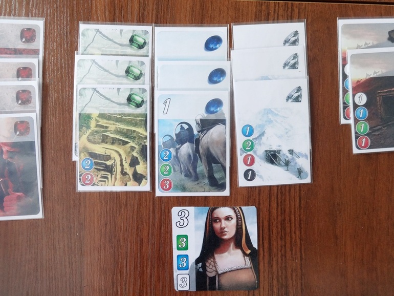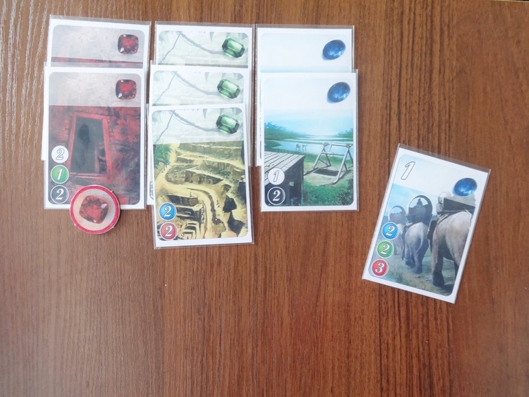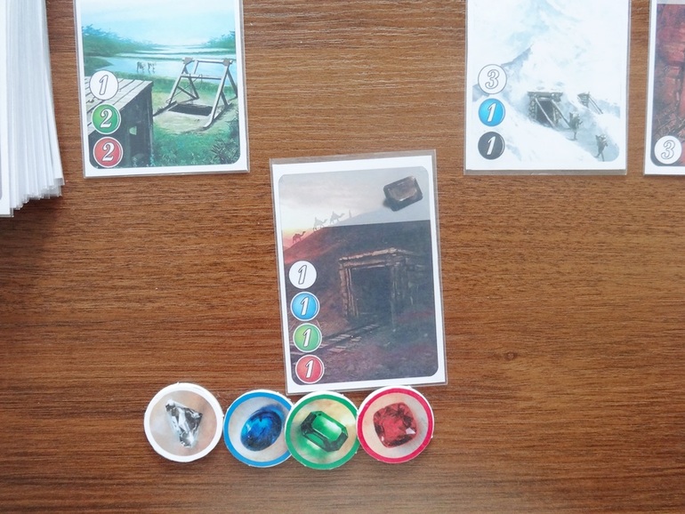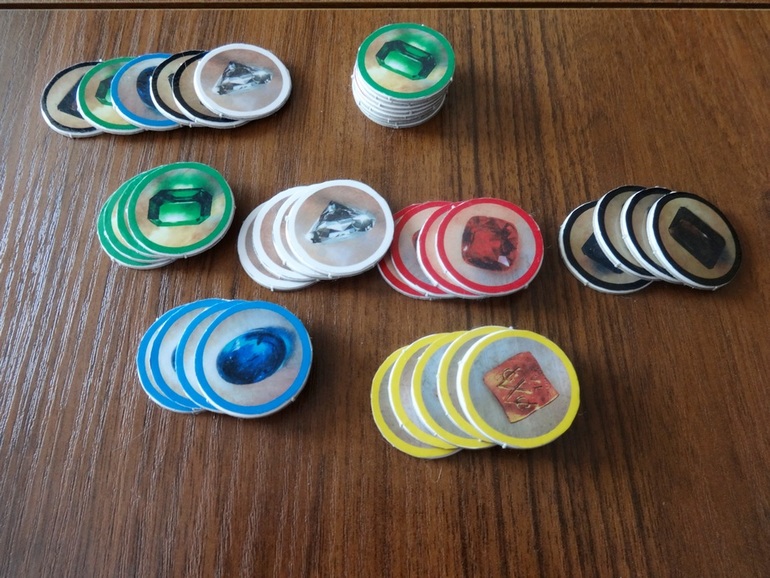 Каждая оплаченная и положенная в свою зону карта при всех последующих ходах заменяет одну фишку драгоценного камня соответствующего цвета. К примеру, чтобы забрать себе карту с синим камнем, достаточно доплатить всего одну красную фишку, т.к. остальные камни уже лежат у игрока в его зоне.