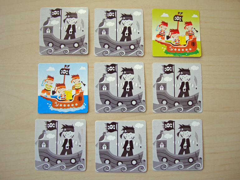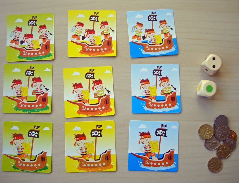 Маленькая симпатичная игра-мемори производства Haba. Рассчитана на 2-4 человек, возрастом старше 4 лет. Попробуем сыграть в нее компонентами «Веселых пиратов».