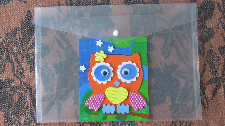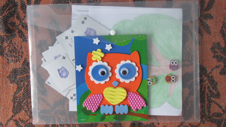 Для хранения игры используем папку с закрывающимся клапаном. Заодно и аппликация у нас есть в тему. Думаю, может, и ее туда прикрепить, будет как раз самое то!