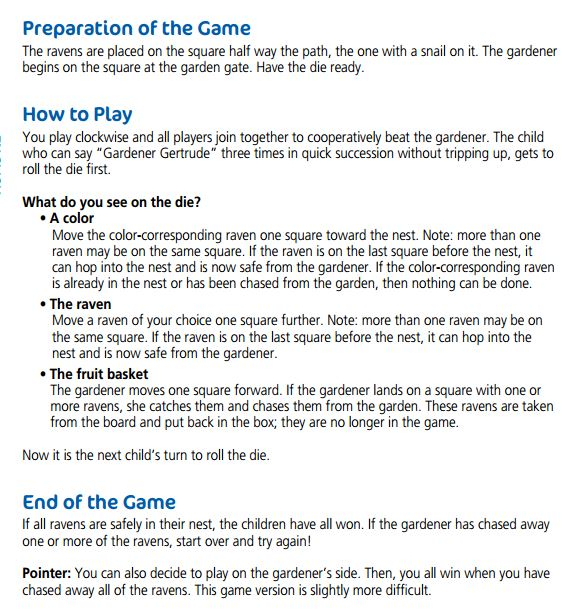 И третий вопрос про усложнение.Написано,что вы можете играть за садовника,но этот вариант сложнее.Как вы,уважаемые сообщники,искушенные в играх,это понимаете? Как должен ходить садовник,если я за него играю? На кубике три разных цвета,ворон и корзинка,что должен делать садовник когда выпадет цвет,например?