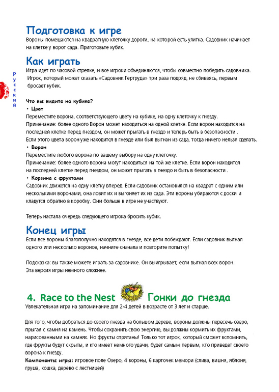 И вот внимание вопрос: если садовник догоняет ворона,одного или нескольких- зачем класть его в коробку и продолжать игру(написано они в игре больше не участвуют),если написано ,что конец игры наступает,если садовник поймал хотя бы одну ворону?